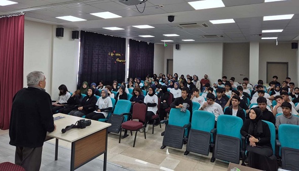 Okulun geleneksel olarak düzenlediği ‘Okuryazar Buluşmaları’ etkinlikleri kapsamında konferans salonunda bir söyleşi gerçekleştiren Ünal, gazeteciliğe başladığı anlarını anlattı ve fotoğrafçılıktan doğan AN kitabı hakkında bilgilendirdi. Kitabın sorgulayan bir özelliğe sahip olduğunun altını çizen Mithat Ünal, öğrencilerin konuyla ilgili fikirlerini de söyleşide paylaştı.